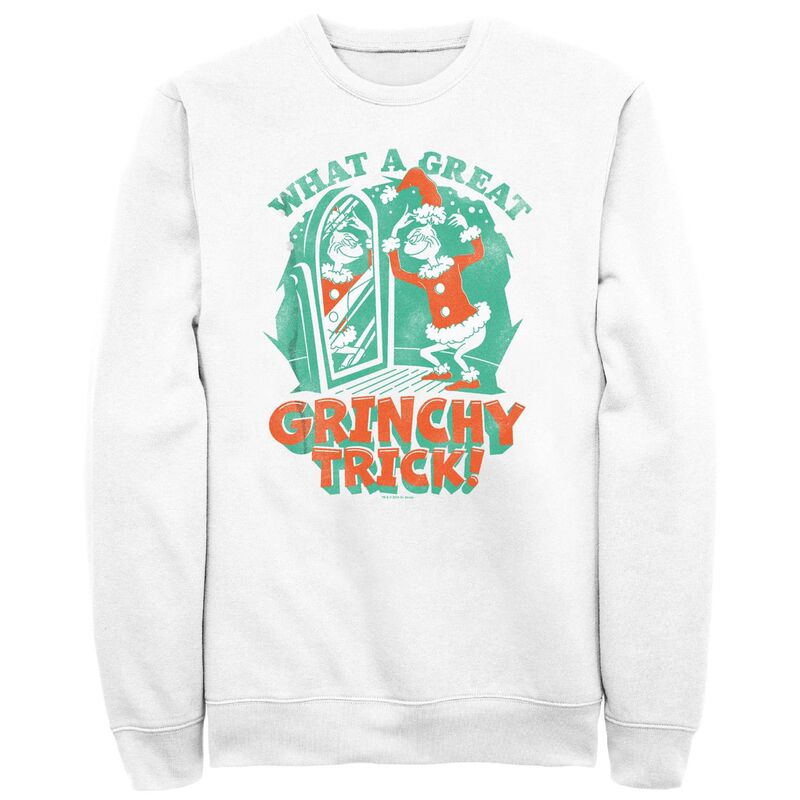 【送料無料】 ライセンス キャラクター メンズ Tシャツ トップス Big & Tall Dr. Seuss What A Great Grinchy Trick Graphic Fleece White