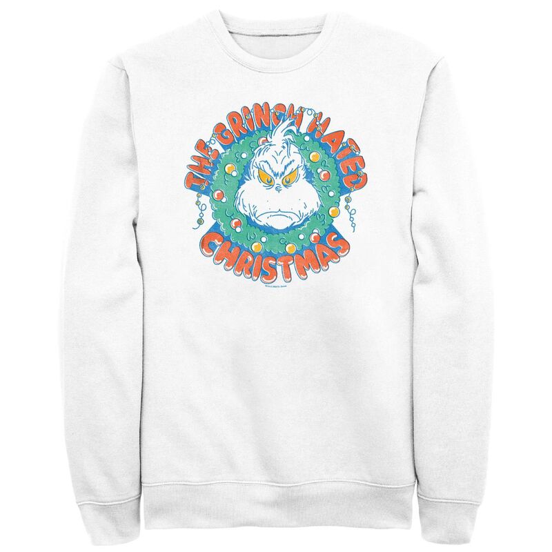 【送料無料】 ライセンス キャラクター メンズ Tシャツ トップス Big & Tall Dr. Seuss The Grinch Hated Christmas Wreath Graphic Fleece White