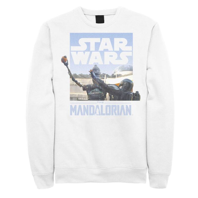 【送料無料】 ライセンス キャラクター メンズ Tシャツ トップス Men's Star Wars The Mandalorian Din Djarin IG-11 Scene Box Graphic Fleece White