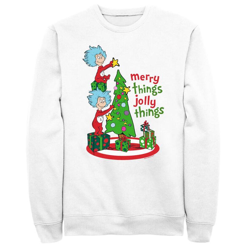 【送料無料】 ライセンス キャラクター メンズ Tシャツ トップス Men's Dr. Seuss Merry Things Jolly Things Graphic Fleece White