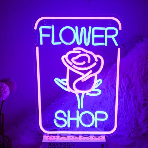 フラワーショップネオンサインLEDフラワーネオンライト調光可能FlowerShopネオン花屋装飾ライト寝室の壁のアートデコレーションライトマン洞窟フラワーショップ誕生日パーティー装飾USB…