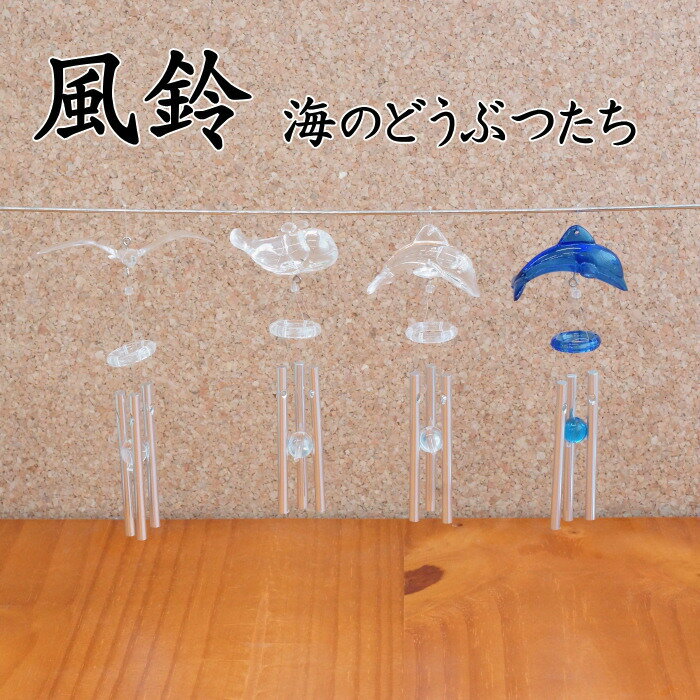 風鈴(海のどうぶつたち) イルカ(ブルー)/イルカ(クリア)/クジラ/カモメ 【ネコポス選択可】 趣味 手芸 雑貨 装飾 飾り アート おしゃれ 素敵 かわいい 癒し 風鈴 アニマル ウィンド ベル チャイム wind chime
