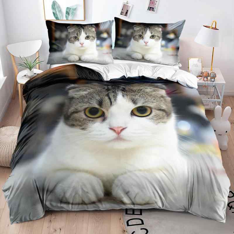 寝具 かわいい 猫柄 アニマル柄 3点セット 掛け布団カバー ピローケース デジタルプリント ピーチスキン加工 ふんわり 柔らかな肌触り 洗える ポリエステル ベッドリネン