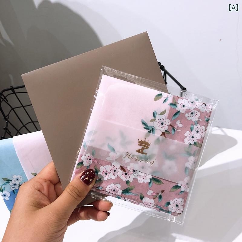 女性用 ハンカチ 綿 桜 柄 スクエアタオル 女の子 レトロ 花柄 結婚 祝い
