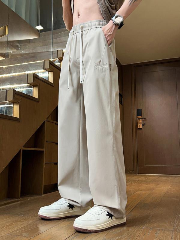 パンツ 男性用 春夏 ズボン ワイドレッグ ストレート ゆったり リラックス カジュアル 薄手 ポリエステル ブラック レンガ色 カーキ色