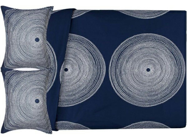 【クイーン】 marimekko マリメッコ Fokus 布団セット (ネイビー) 243×233cm 布団1枚&枕カバー2枚 寝具
