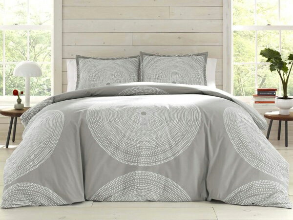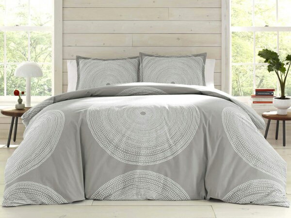 【キング】 marimekko マリメッコ Fokus 布団カバー・セット (グレー) 243×269cm 掛布団カバー1枚&枕カバー2枚 寝具