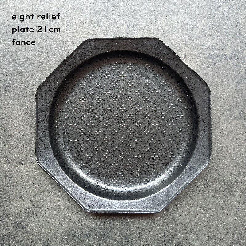 8角形皿 ブラック 【 エイトレリーフ 8角プレート 21cm 】【 fonce フォンセ 】 Black かっこいい シック 黒いお皿 八角形 中皿 カフェ食器 おうちカフェ 食洗機使用可 電子レンジ対応可