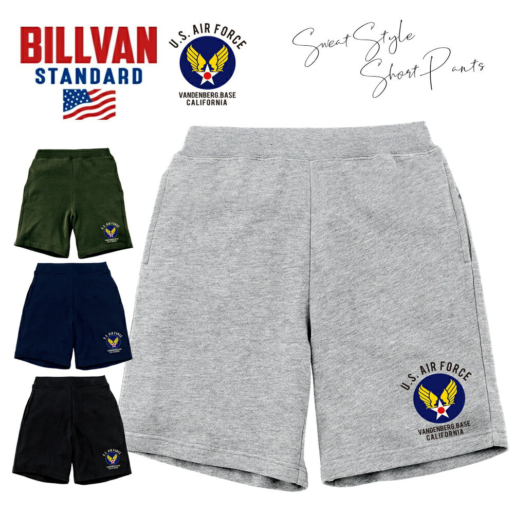 BILLVAN ビルバン ミリタリー U.S.AIR FORCEプリント 裏パイル スウェット・ショートパンツ アメカジ