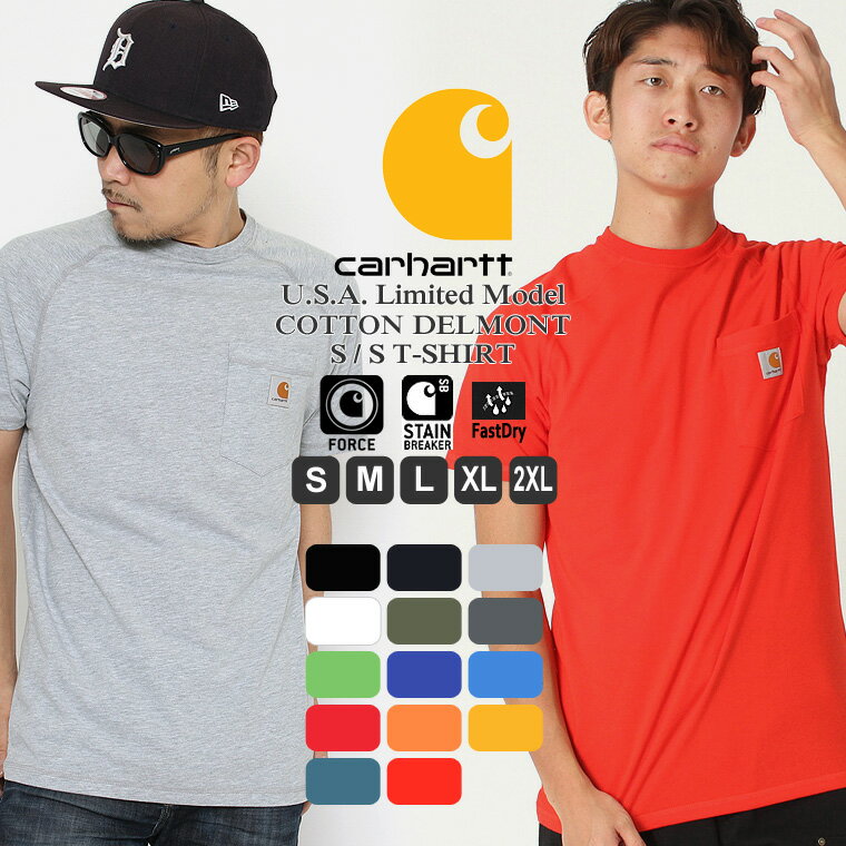 【ネコポス発送】 カーハート ポケット Tシャツ CARHARTT FORCE COTTON DELMONT SS T-SHIRT 100410 Black White Coral Navy Red Blue Carbon Heather Moss Green 速乾性 防臭 防汚 ドライ ワーク 半袖T 無地T ポケT 厚手 頑丈 メンズ 男