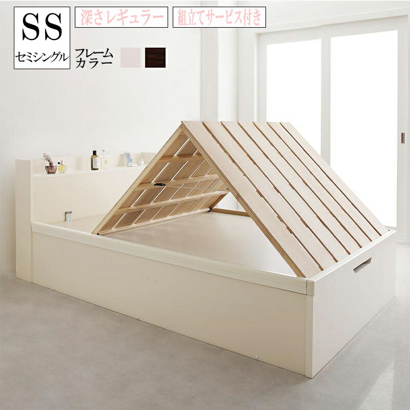 【送料無料】 組立設置サービス付き すのこ 収納 ベッド セミシングル 深さレギュラー フレームのみ 国産頑丈スノコ跳ね上げ式大容量収納ベッド Long force ロングフォルス 木製 棚付き 宮付き コンセント付き 布団干し ダークブラウン ホワイト