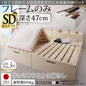 【 日本製ベッド 】 1台で3役使える 国産 頑丈すのこ跳ね上げ式 大容量収納ベッド Long force ロングフォルス セミダブル セミダブルベッド 【深さ: グランド】 マットレス別売り セミダブルベッド セミダブル マットレス無し 木製 木 すのこ 跳ね上げ セミダブルベッド