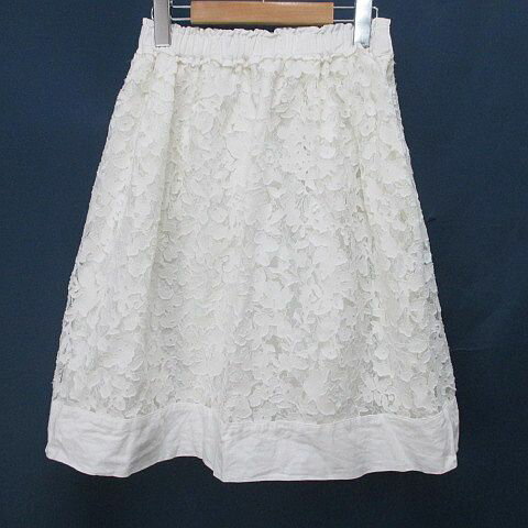【中古】フランコフェラーロ FRANCO FERRARO 膝丈 フレアスカート 2 白系 ホワイト レース 裏地 ギャザー 日本製 レディース 【ベクトル 古着】 250726