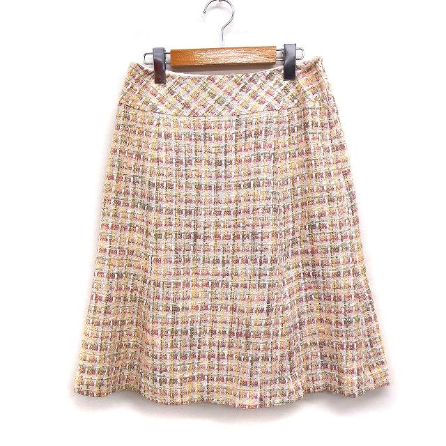 【中古】フランコフェラーロ FRANCO FERRARO ツイード フレアスカート ひざ丈 ウール混 3 ピンク /FT45 レディース 【ベクトル 古着】 250704
