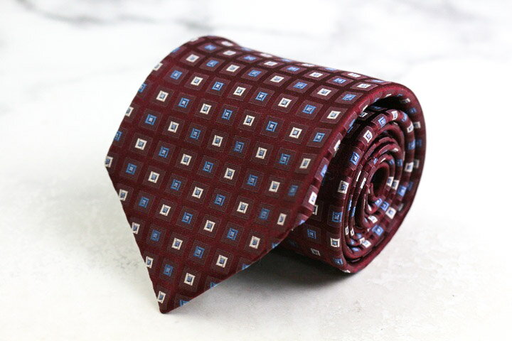 FRANCO FERRARO フランコフェラーロ ブランド ネクタイ 格子柄 スクエア柄 小紋柄 シルク 日本製 PO メンズ ワインレッド 【中古】