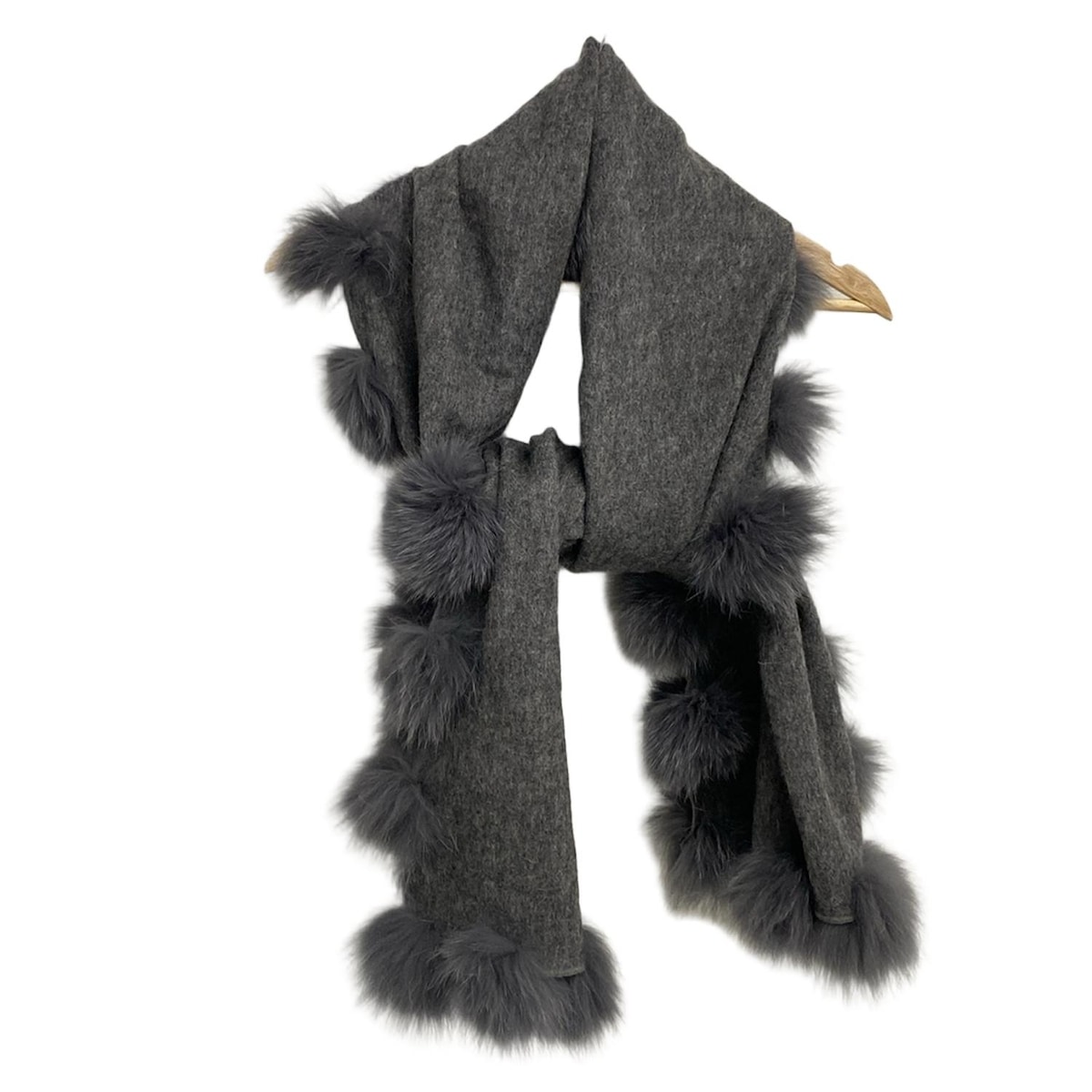【中古】FRANCO FERRARO(フランコフェラーロ) マフラー ダークグレー ウール、フォックス