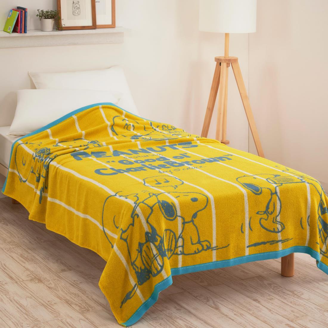 nishikawa【西川】 スヌーピー タオルケット シングル 洗える 優しい肌触り ストライプ イエロー FR05600608 PN5603BD Friendry