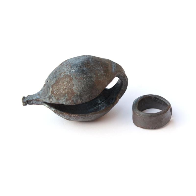アフリキコ AFRIKICO フリチワ Frikyiwa 鐘 指ベル Finger Bell M ガーナ製 Made in Ghana鉄製の響きのよい鐘。本体に中指、リングに親指を通し、打ち付けて音を奏でます。小さいながらもよく響きます。持ち運びに便利な手のひらサイズ。本体価格1,600円 L:7cm W:4.5cm H:4cm (リング 内径:2.0-2.3cm H:1.0-1.2cm)鉄製リング付き手作りのため、商品により多少大きさや形などが異なります。