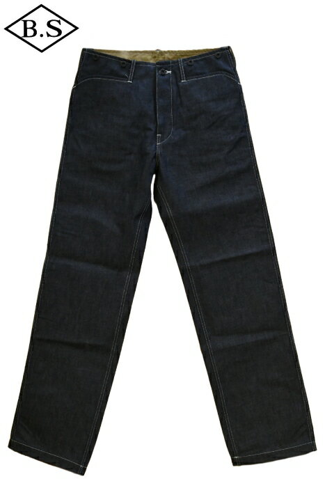40’sWW2のフリスコパンツをベースに製作しました。 5本ベルトループや月桂樹ボタン、コインポケット省略など簡素化されたディテールが特徴的な一着。 後ろポケットをスナップボタンではなく打ち込みボタン仕様もポイントです。 腰裏見返しにはキャメルのへリンボンファブリックを選定し、30番綿糸6.8mm巾2本針環縫い縫製にて仕上げております。 シンプルな形のなかに大戦期のディテールが魅力的でクラシカルなファブリックで落とし込んだWW2フリスコパンツ。 同素材のジャケット、ベストとのセットアップも可能です。 素材:コットン100% 10oz INDIGO DENIM サイズ(ノンウォッシュ未洗い品) 32 ウエスト83cm 股上30cm 股下87.5cm ワタリ34cm 裾幅25cm 34 ウエスト86cm 股上31cm 股下87.5cm ワタリ35cm 裾幅26cm ※商品在庫は実店舗と共有しております。 御注文可能な状態になっている商品であっても、 既に完売となっている場合がございます。 迅速な完売表示を心がけておりますが、 手配不可能な場合はキャンセルとさせて頂きます。 画像と実物ではディスプレイ環境等により色合いに多少の誤差が生じます。 またサイズによって多少の誤差が生じますので、予めご了承下さい。