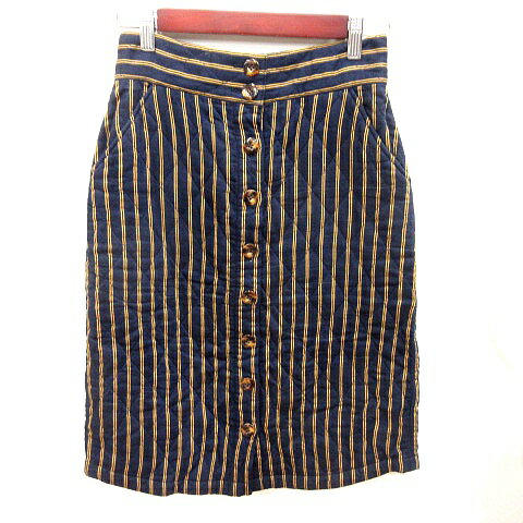 【中古】ミラーオブシンゾーン MIRROR OF Shinzone スカート タイト ひざ丈 キルティング ストライプ 38 紺 ネイビー /RT レディース 【ベクトル 古着】 250807