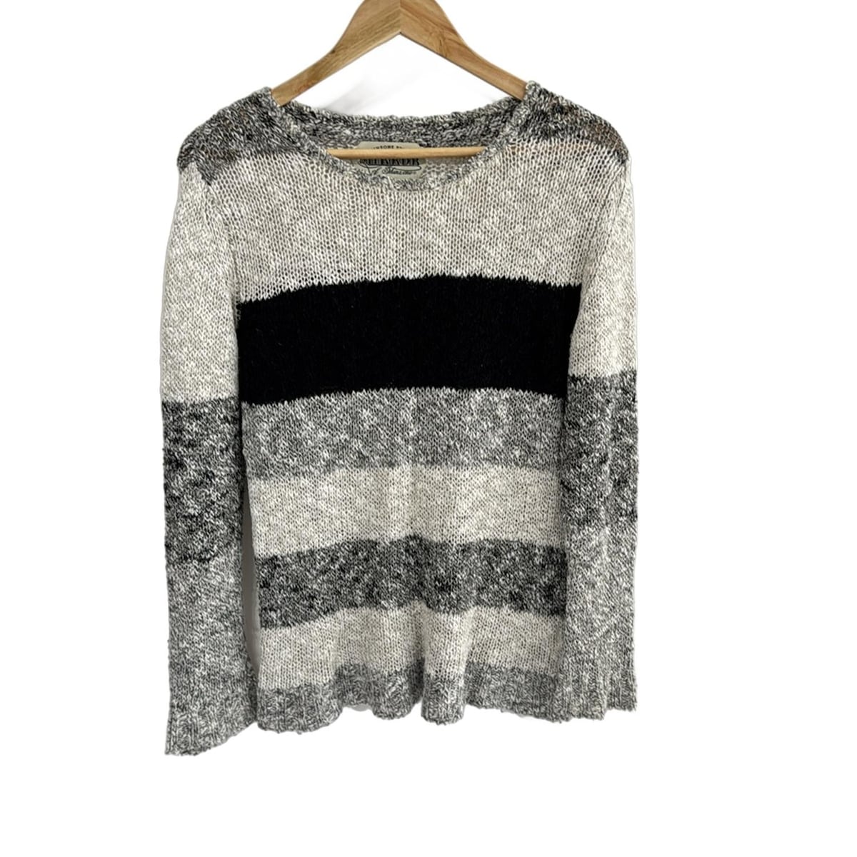 【中古】Shinzone(シンゾーン) 長袖セーター クルーネック/ボーダー/MIRROR of Shinzone/シースルー グレー×白×黒