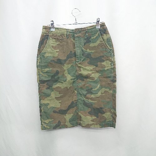 ◇ ⊂ MIRROR OF Shinzone 迷彩柄 綿 膝丈 タイト スカート サイズ38 カーキ レディース E 【中古】