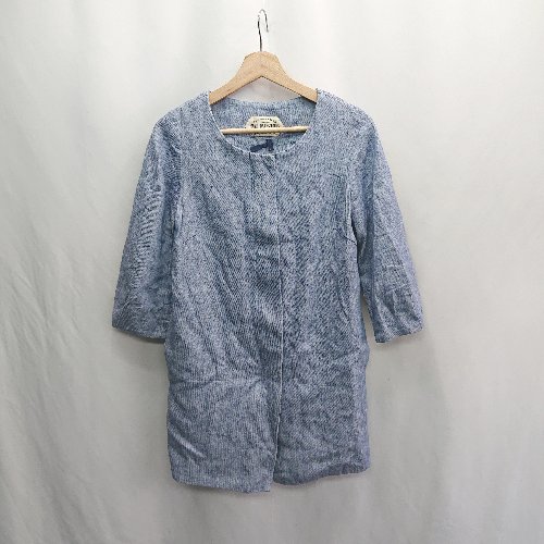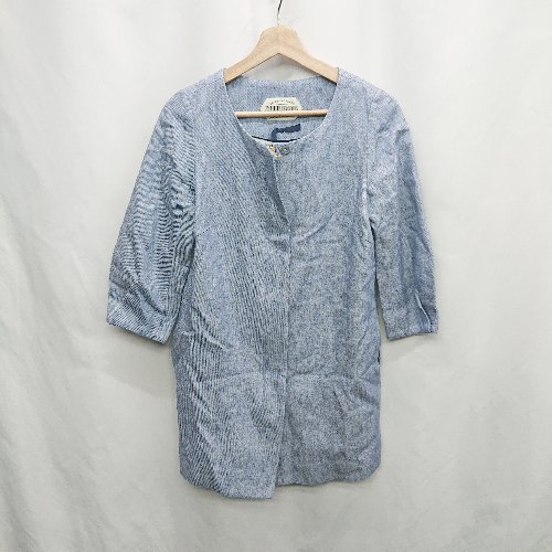 ◇ ⊇ MIRROR OF Shinzone ミラーオブシンゾーン ノーカラー 七分袖 コート サイズ36 ブルー レディース E 【中古】