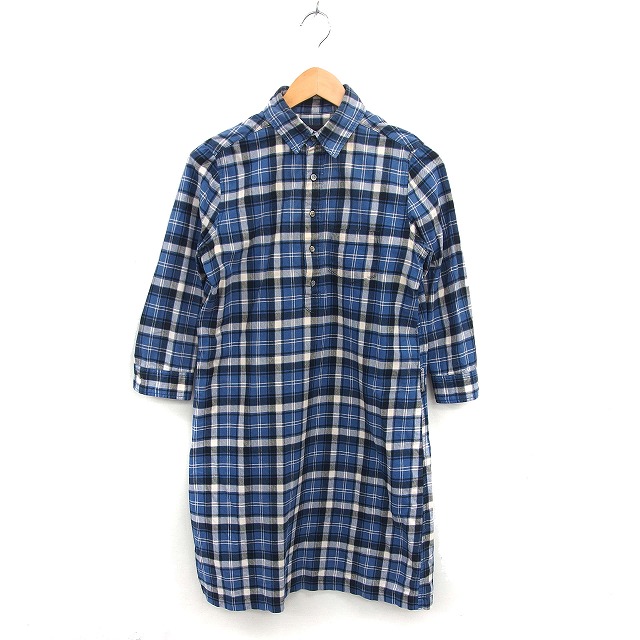 【中古】ミラーオブシンゾーン MIRROR OF Shinzone シャツワンピース チェック フレア ひざ丈 ステンカラー ハーフボタン 七分袖 38 青 ブルー /NT7 レディース 【ベクトル 古着】 250721