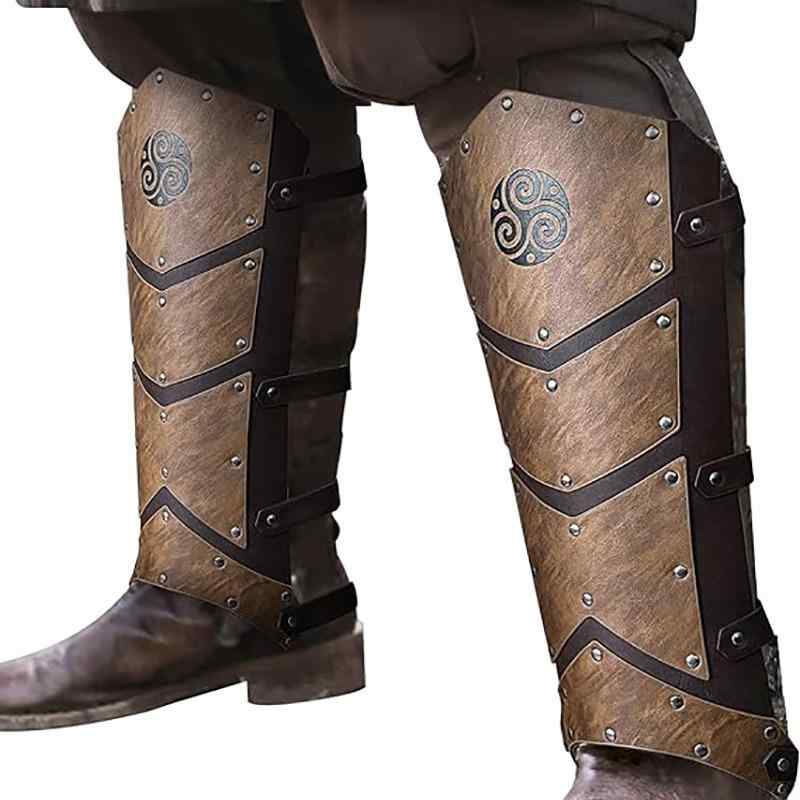 レッグアーマー 大人用 ヴァイキング 中世 ルネサンス時代 レザー製 脚用プロテクター 欧米ファンタジー コスプレ 衣装 イベント 仮装 ブラック ブラウン ダークブラウン