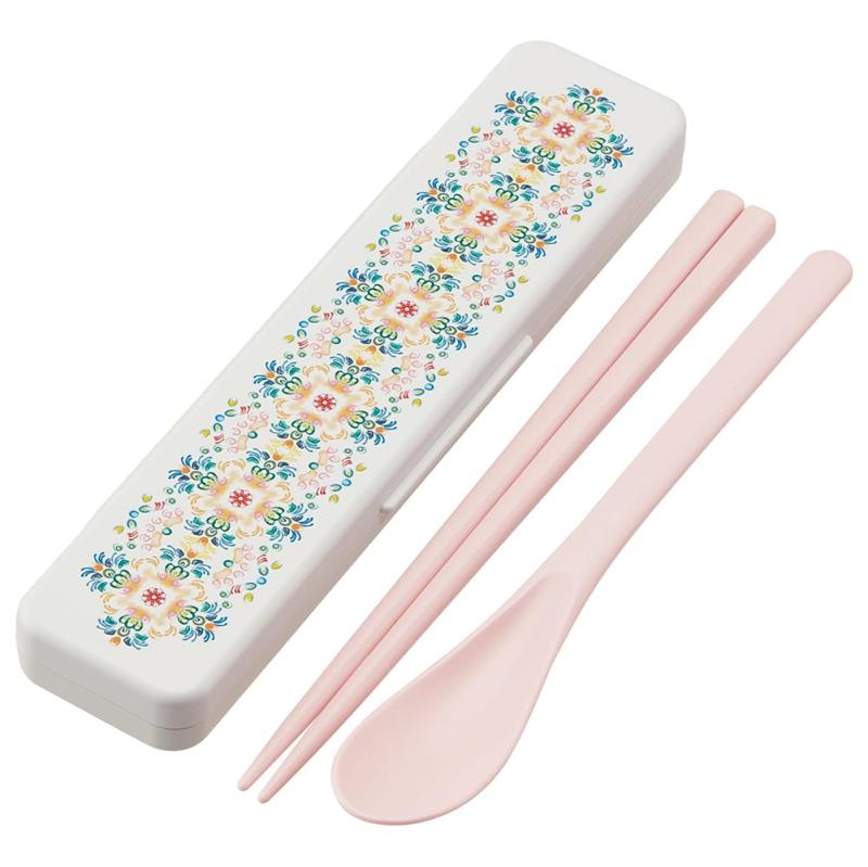 スケーター(Skater) 箸 スプーンセット 弁当 大人用 抗菌 コンビセット 18cm カチャカチャ鳴らない 日本製 天平文様 夢幻 薄紅 CCS3SAAG-A