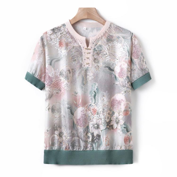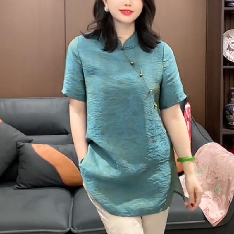 Tシャツ レディース おしゃれ 40代 半袖 スタンドカラー チャイナ風 飾りボタン 夏 中国風 ヴィンテージ風 ゆったり 上品 大きいサイズ