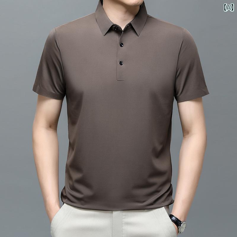 ポロシャツ カジュアル ゴルフ レジャー 夏 冷感 半袖 Tシャツ メンズ スウェットシャツ シームレス アイロン フリー 無地 レイヤリング シャツ ビジネス