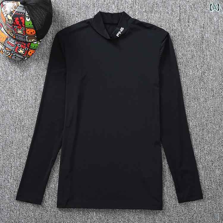 Tシャツ メンズ 長袖 トップス トレーニング ジム フィットネス 韓国 ゴルフ 夏 日焼け防止 ハイネック 薄手 サイクリング スリム ブラック ホワイト