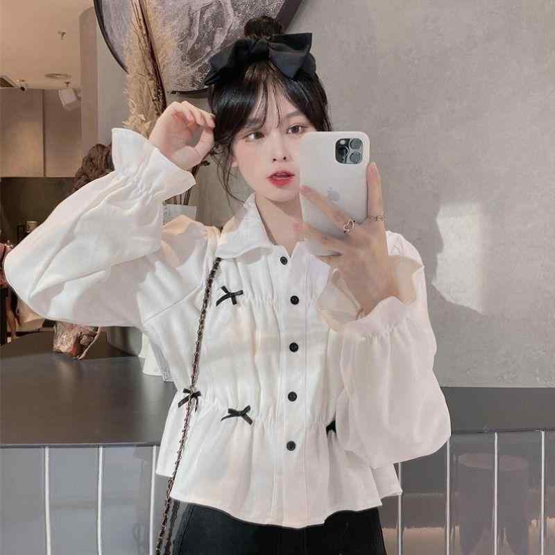 ・素材: 酢酸繊維、スパンデックス・柄: 無地・スタイル: プルオーバー・袖丈: 長袖・シルエット: スリム・着丈: ショート(40cm超50cm以下)・ネックライン: ポロネック・袖のタイプ: レギュラー・要素: ボタン・カラー: ホワイト、ブラック・サイズ: S、M、L、XL・系統: スイートスパイシー・前立て: シングルブレスト・主素材の含有量: 30%以下・種類: シャツ