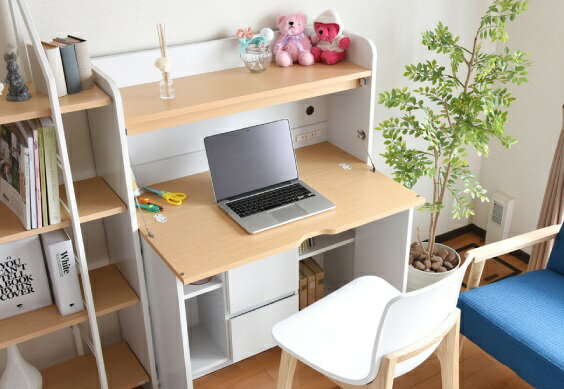 ※代引き支払不可【こちらの販売商品はメーカー直送になりますので以下の注意事項をご確認ください】・代引きでのお支払いは選択出来ませんのでご了承ください。・沖縄、その他離島・一部地域へのお届けは対象外となります。・出荷後の商品の変更及び配送日の変更などはお受け出来かねますので予めご了承ください。・メーカー在庫の変動により納期が変動する場合がありますので予めご了承ください。JKプラン 子供用デスク 学習机 キッズデスク ライティング 幅90.0 奥行31.5/60.5 高さ115.5 薄型 省スペース 奥行60.5 子供 キッズ ジュニア FWD-0278-WHNA ホワイト×ナチュラル■リビングにぴったり、折り畳み式天板のライティングデスク。子供の学習机として、ママのPCデスクとして、リビングで大活躍。■折り畳み式天板は使いたいときだけ広げて使わない時は畳んですっきり、ライティングデスク。薄型で省スペースなのでリビングに最適。お子様の「リビング学習」から、ママやパパのパソコンデスクとしても。上部にはランドセルなどを置けるオープン収納部、下部には扉収納部と3段の引出しで、収納力にも自信あり。コンセント、配線コード穴もあるので、PC、周辺機器の設置もOKです。■外寸:幅90.0×奥行31.5/60.5×高さ115.5cm■内寸:(上オープン部)幅86×奥行26.5×高さ9.5cm(デスク作業面)幅82.5×奥行56.0×高さ27cm(左右扉内)幅24×奥行23.5×高さ60cm(引き出し)幅24×奥行22×高さ13(有効:上16/中15/下15)cm(可動棚)幅27.5×奥行23×厚み1.8cm(3.2cmピッチ11穴)■収納量・耐荷重:[上オープン部]約20kg以下[デスク天板]約15kg以下[デスク天板奥]約40kg以下[引き出し]各約5kg以下[可動棚]各約7kg以下■材質:[本体]プリント紙化粧合板[天板]合成樹脂化粧合板(PVC)■備考:・可動棚:2枚・キャスター2個・合計1500Wの2口コンセント付き(コード長さ196cm)■生産国:中国■お客様組立大人2人:60分商品の特長・仕様に関する詳細はメーカーホームページでもご覧頂けます。