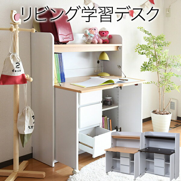 折り畳み式天板で、使いたいときだけ広げて、使わない時はすっきり畳んでおける、ライティングデスク。しかも薄型だからリビングに最適。リビングでの子供の学習から、ママやパパのパソコンデスクとしても。上部にはランドセルなどを置けるオープン収納部、下部には扉収納部と3段の引出しで、収納力にも自信あり。コンセント、配線コード穴もあるので、PC、周辺機器の設置もOKです。幅90.0×奥行31.5〜60.5×高さ115.5cm[内寸]:(上オープン部)幅86×奥行26.5×高さ9.5cm(デスク作業面)幅82.5×奥行56.0×高さ27cm(左右扉内)幅24.0×奥行23.5×高さ60.0cm(引出し)幅24.0×奥行22.0×高さ13(有効:上16/中15.0/下15.0)cm(可動棚)幅27.5×奥行23×厚み1.8cm(3.2cmピッチ11穴)(幅木避け)奥行1.5×高さ10.0cm[本体]プリント化粧繊維板[天板・フラップ天板]塩ビ化粧繊維板[上オープン部]約20kg以下[フラップ天板]約15kg以下[フラップ天板奥]約40kg以下[引出し]約5kg以下[可動棚]約7kg以下・可動棚:2枚・合計1500W2口コンセント付/コード長さ196cm・キャスター2個生産国:中国大人2人での組立時間(目安):60分【代引きについて】こちらの商品は、代引きでの出荷は受け付けておりません。【送料について】北海道、沖縄、離島は送料を頂きます。デスク 関連商品 シリーズラック カウンター下タイプ ホワイトラック カウンター下タイプ ナチュラルラック ワイドタイプ ホワイトラック ワイドタイプ ナチュラルツインデスクツインデスク チェスト付きパソコンデスク