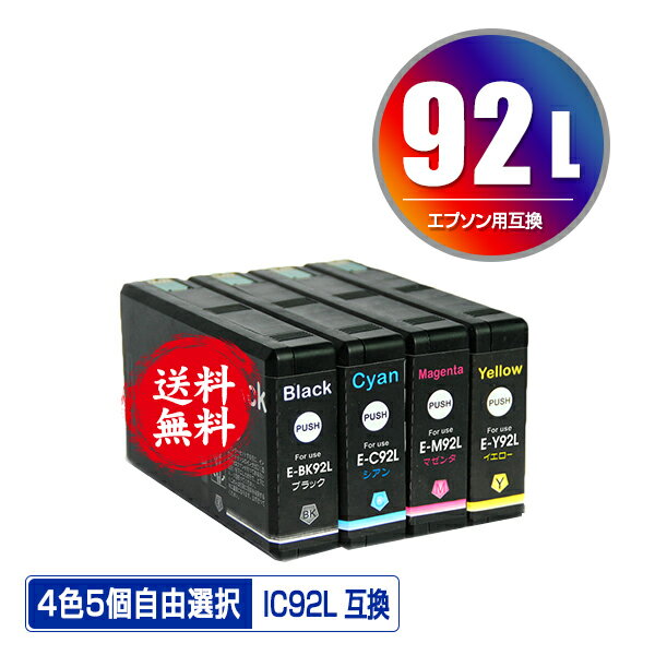●期間限定!IC92L 4色5個自由選択 エプソン用 互換 インク メール便 送料無料 あす楽 対応 (IC92 IC92M ICBK92L ICC92L ICM92L ICY92L ICBK92M ICC92M ICM92M ICY92M PX-M840F IC 92 PX-M84FC6 PX-M84FZC6 PX-S840 PX-S84C6 PX-S84ZC6 PX-M84C8 PX-M84CC8 PX-M84CHC8)