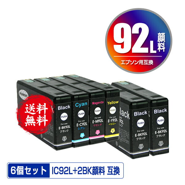 ●期間限定!IC92L 4色セット + ICBK92L×2 顔料 お得な6個セット メール便 送料無料 エプソン用 互換 インク (IC92 IC92M ICC92L ICM92L ICY92L ICBK92M ICC92M ICM92M ICY92M PX-M840F IC 92 PX-M84FC6 PX-M84FZC6 PX-S840 PX-S84C6 PX-S84ZC6 PX-M84C8)
