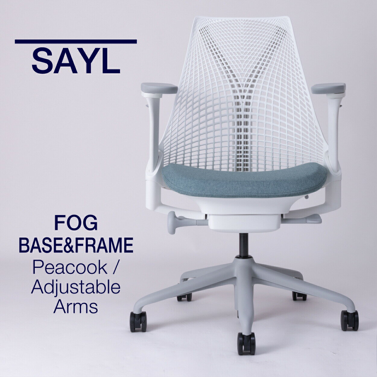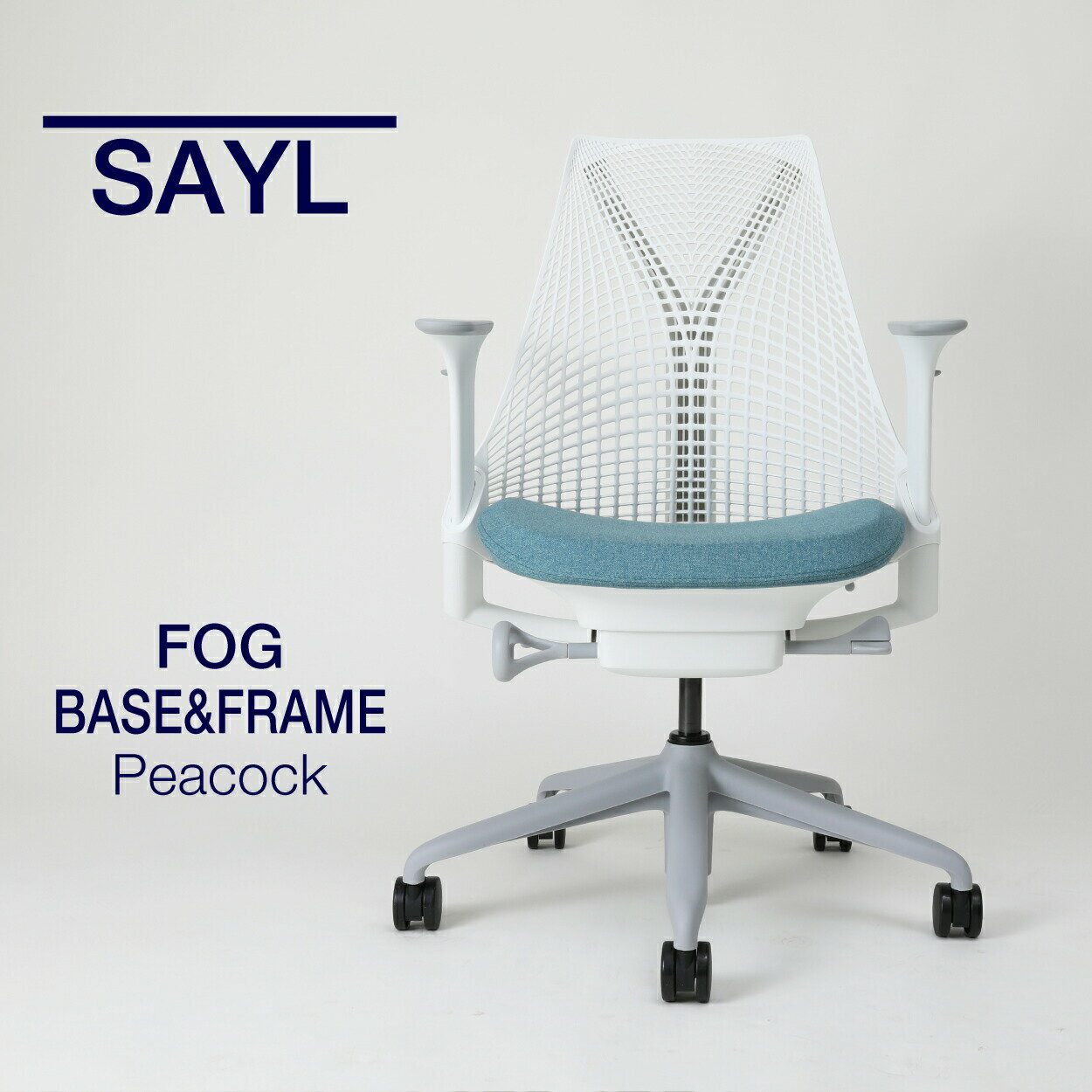 【即納在庫有】ハーマンミラー セイルチェア フルアジャスタブルアーム 奥行調節シート 前傾チルト機能付き フォグベース ホワイトフレーム カーペット用BBキャスター スタジオホワイトサスペンション フォグアーム ピーコックファブリック