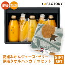10FACTORY ギフト 愛媛 みかん ジュース 飲み比べ 3本(200ml) みかんゼリー 2個(2種類) 今治タオル 伊織 mikan ハンカチ セット 100%ジュース 箱入り 手提げ袋付 オレンジ 贈答 内祝い お返し お見舞い お供え お歳暮 母の日 父の日 プレゼントに