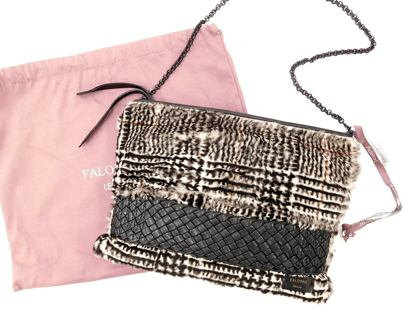 イタリア製 FALORNI ファロルニ チェーン付き クラッチ ショルダー ファーバッグ ブラウン系 SMALL /sh20180712-6 /レディース