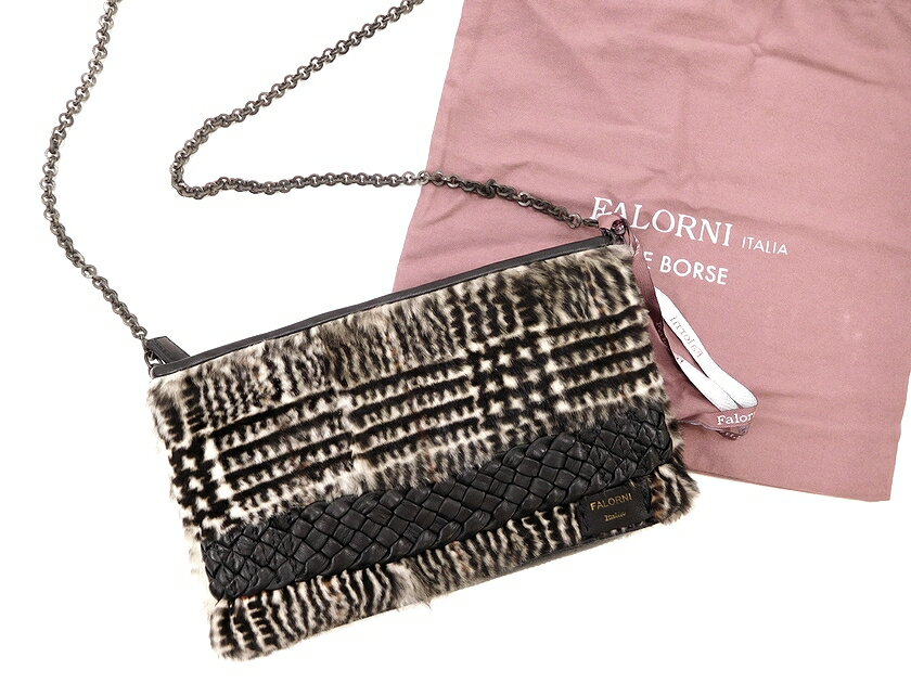 イタリア製 FALORNI ファロルニ チェーン付き クラッチ ショルダー ファーバッグ ブラウン系 /sh20180712-5 /レディース