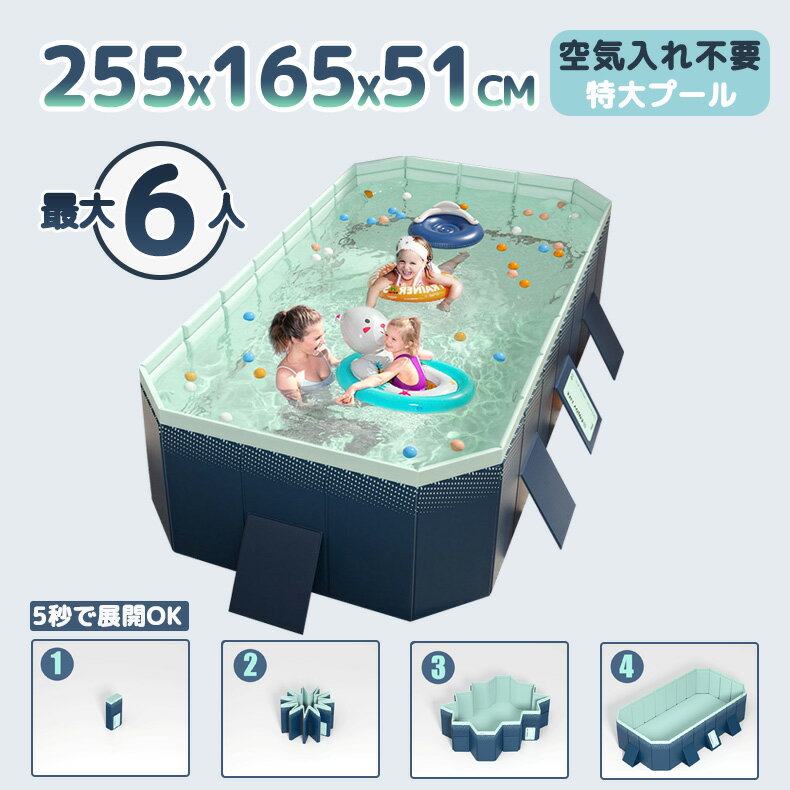 プール ビニールプール 空気入れ不要 2.6M 折り畳みキッズプール 長方形 ファミリープール パネルプール ビニールプール 最大6人 子供用 大型家庭用プール ガーデンプール レジャープール プレイプール ビッグサイズ
