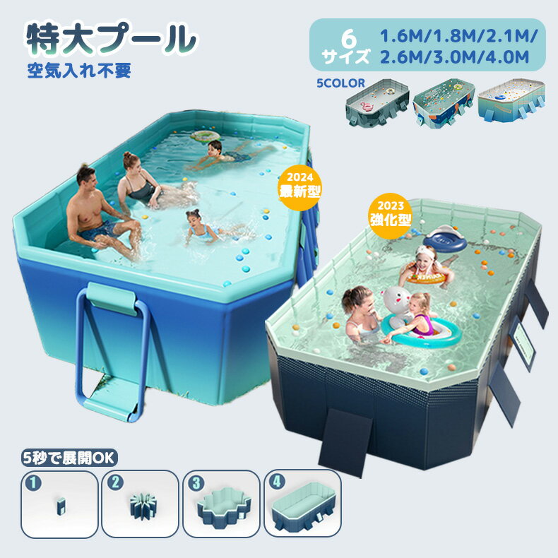 折りたたみ プール空気入れ不要 折り畳み プール 大型家庭用 折りたたみ プール 折りたたみ プール ファミリープール 大型 正規品 子供用折り畳み プール キッズプール家庭用プール 簡易プール 庭 室内 室外 アウトドア 空気漏れ無し 長方形 水遊び 屋外 収納便利