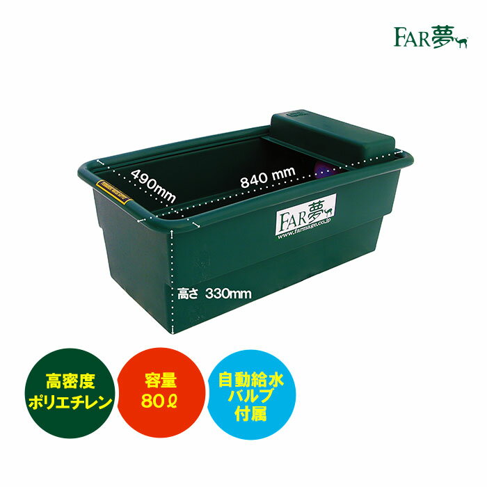 給水器 水飲み 家畜 【角型トロフ80リットル 】【 80L 牛 ウシ 羊 ヒツジ 馬 水桶 水おけ 水槽 ウォーターカップ タンク 給水 自動給水 排水栓付き 高密度ポリエチレン製 ローリータンク コンテナ ポリタンク 酪農 畜産 放牧 放牧地 農場 家畜 ファームエイジ FAR夢 】