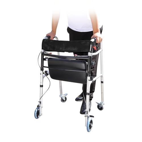 lefeke 歩行器 折りたたみ 歩行車 室内室外兼用 立ち上がり補助 ブレーキ付 アルミ製 介護 リハビリ 5段高さ調整可能 高さ80~90cm キャスター付き 背もたれ クッション付 耐荷重150KG ストッパー付き お年寄り 介護用 高齢者 福祉用具