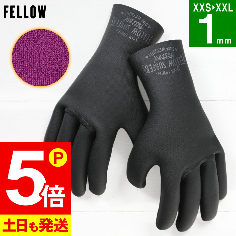 [店内全品ポイント5倍]サーフグローブ 1mm FELLOW 薄手 サーフィン グローブ 手袋 保温 裏起毛 スキン メンズ レディース キッズ 伸縮 軽量 サーフィングローブ 防寒 グッズ 日本規格