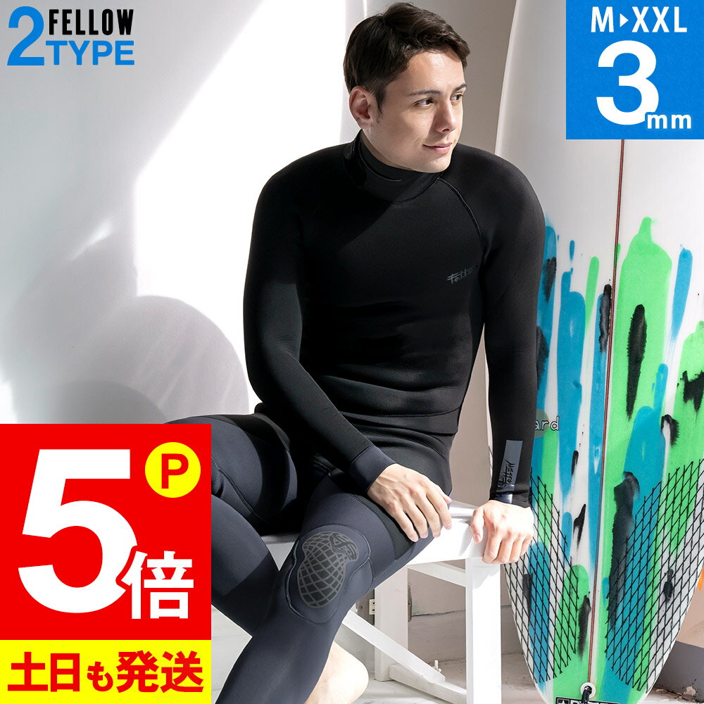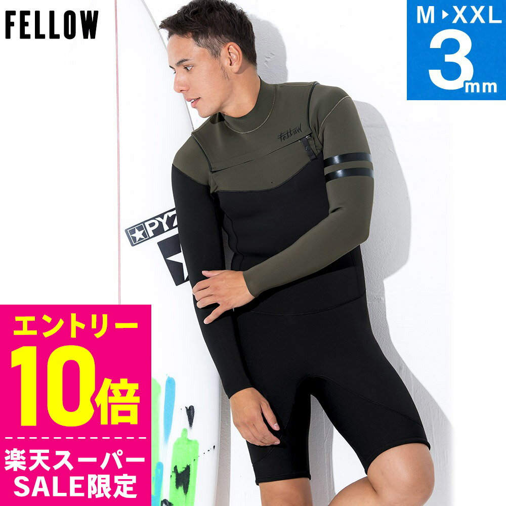 [開始4時間限定クーポン]FELLOW ウェットスーツ ロングスプリング 3mm メンズ ロンスプ チェストジップ ノンジップ ジャージ ウエットスーツ サーフィン SUP ダイビング シュノーケリング 22F-LS12