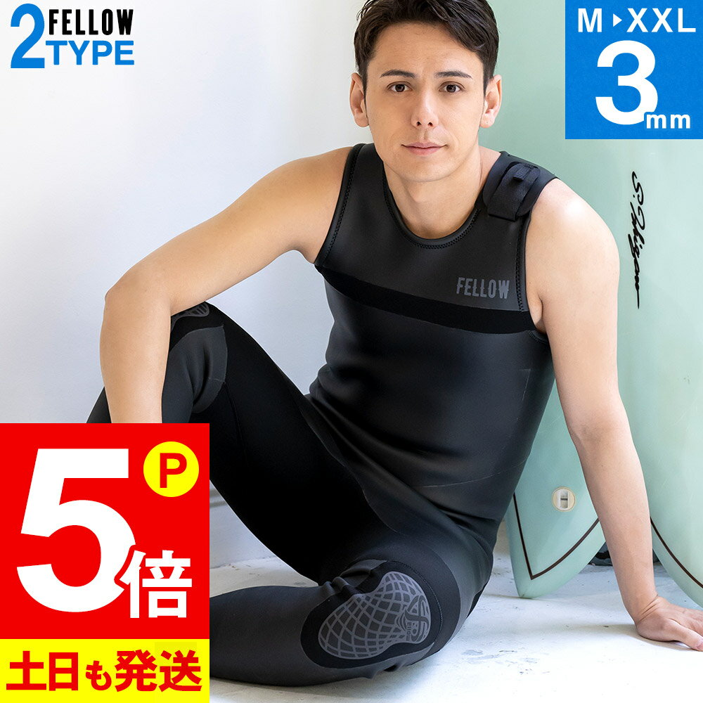 [店内全品ポイント5倍]FELLOW ウェットスーツ ロングジョン 3mm メンズ ノンジップ 肩ベルクロ スキン ラバー クラシック ウエットスーツ サーフィン SUP ダイビング シュノーケリング 21F-LJ12