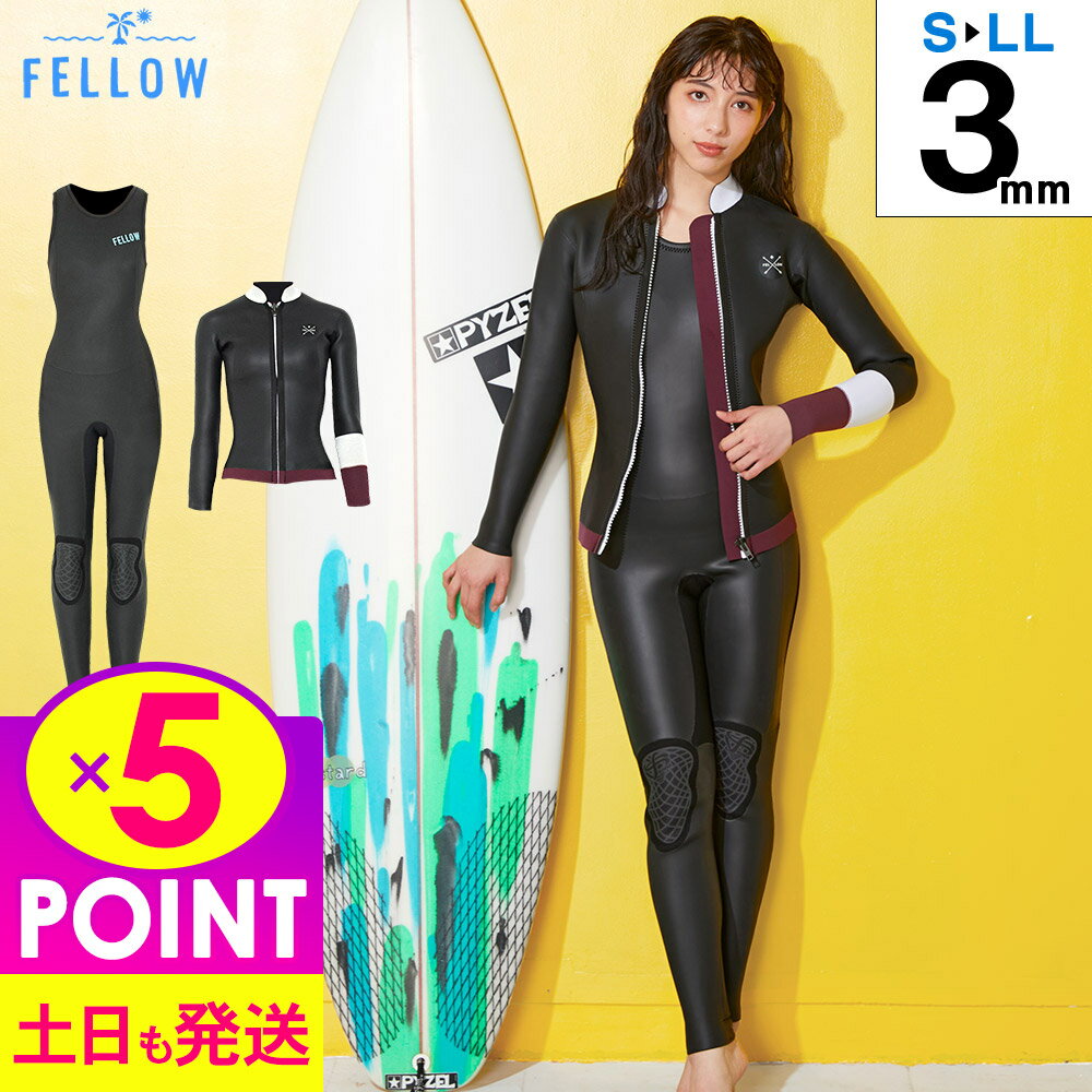 [店内全品ポイント5倍]ウェットスーツ レディースフルスーツ 3mm チェストジップ FELLOW ジャーフル ウエット サーフィン ウエットスーツ SUP 日本規格 大きいサイズ ジャージ ダイビング 防水システム ノンジップ